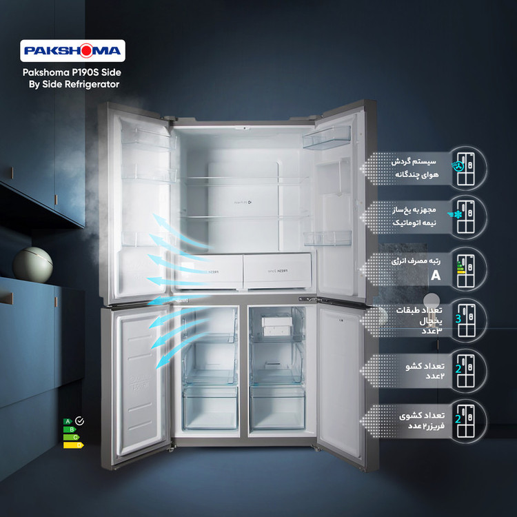 نوع یخچال: یخچال و فریزر ساید بای ساید چهار در