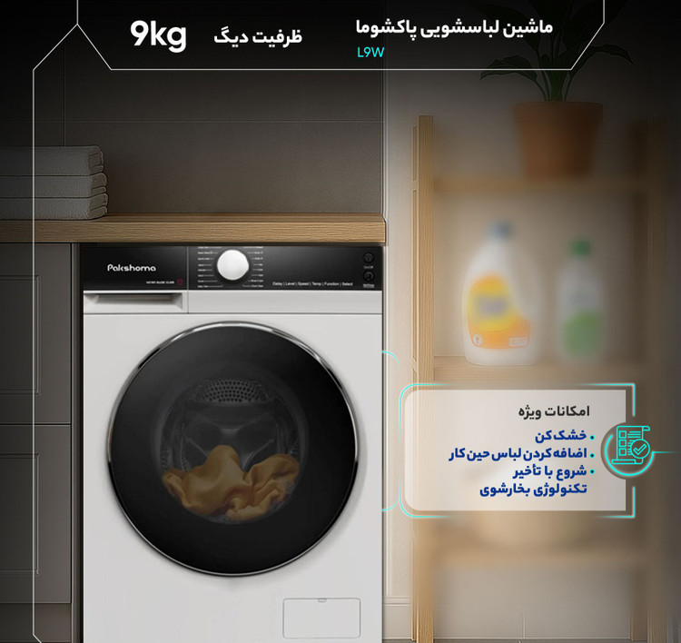 ماشین لباسشویی 9 کیلوگرم اتوماتیک پاکشوما مدل L9W